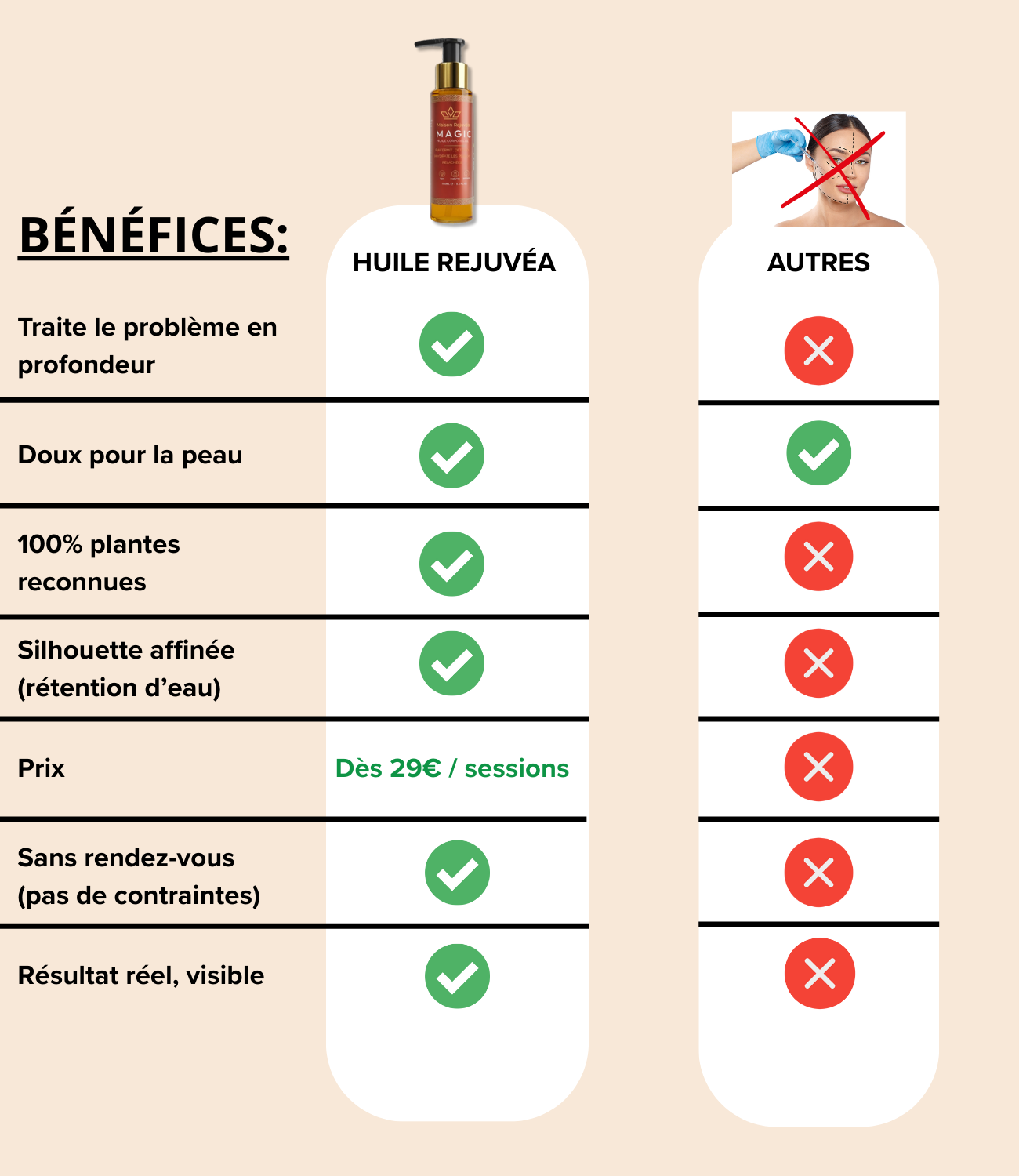 L'huile Rejuvéa s’adresse à toutes celles dont la peau manque de fermeté, présente des vergetures ou un relâchement cutané, qu’ils soient liés à la grossesse, aux variations de poids ou au processus naturel du vieillissement.