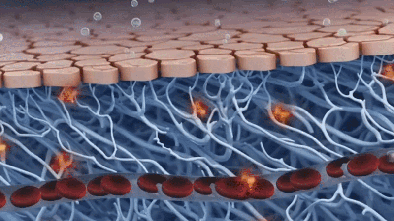 Jusqu'à 30% de perte dans les 5 premières années de ménopause. La peau perd son « rebond » et s'affine dangereusement.